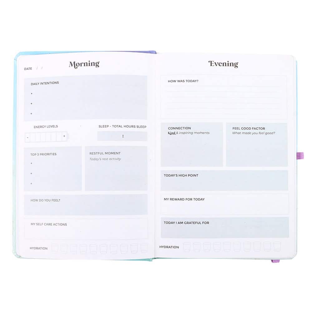 Stay aligned with your intentions using this A5 Aura Energy Wellness Journal with Pen. Designed with calming artwork and guided prompted pages, this journal helps you track thoughts, goals, gratitude, and daily reflections. It features an elastic closure to keep everything secure and includes a coordinating crystal chip pen for mindful note-taking. With 100 iridescent-edged sheets (200 prompted pages), it’s a beautiful tool for self-care and personal growth.