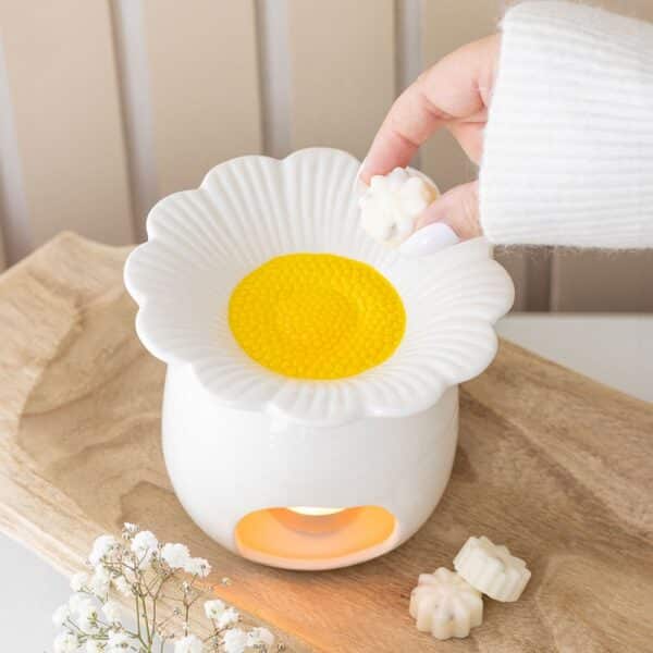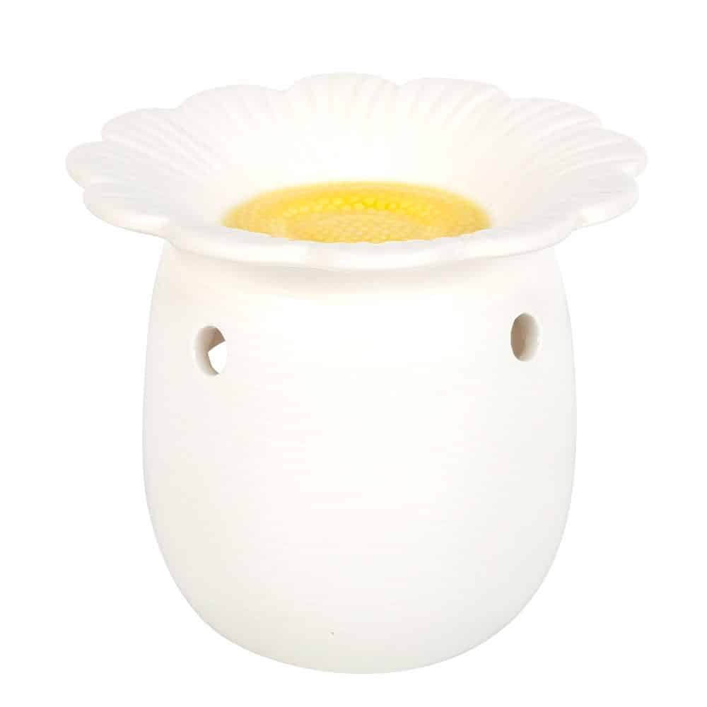 Brighten your home with this Daisy Oil Burner & Wax Warmer. With its whimsical flower design, it adds a cheerful touch to spring décor while filling your space with uplifting fragrance. Simply place a standard tealight inside and add diluted fragrance oil or wax melts to the bowl above to gently scent your room. For best use, always be mindful of wax levels to avoid overflow when melted.