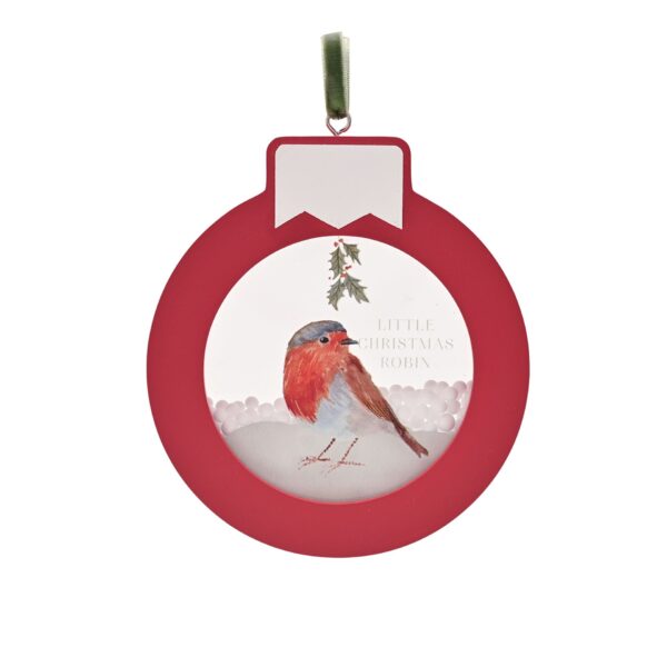 Add a touch of woodland magic to your festive décor with this Robin Christmas Plaque. Featuring a charming robin design set against a snowy winter scene, this bauble-shaped wooden decoration brings warmth and nature-inspired beauty to any home. Finished with a soft velvet ribbon for easy hanging, it’s a lovely addition to your Christmas collection or a thoughtful seasonal gift.