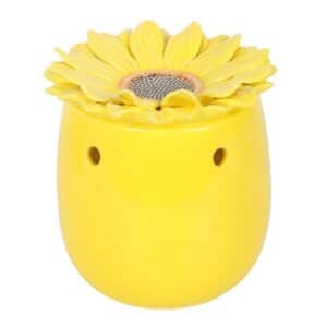 Bring a burst of sunshine into your home with this Sunflower Ceramic Oil Burner & Wax Warmer. Finished in vibrant yellow and decorated with a cheerful sunflower design, this piece adds colour and warmth while helping create a calm, relaxing atmosphere. Simply place a standard tealight inside and add diluted fragrance oil or wax melts to the bowl above to gently release scent. Always be mindful of wax levels to prevent overflow when melted.